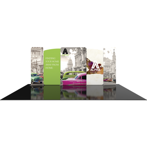 20ft Fabric Backwall 02 is pre-designed and will also fit into 20ft wide and/or 10ft wide with a quick shuffle of the elements without the need for extra parts. Incredibly versatile and great value for your varied exhibit needs.