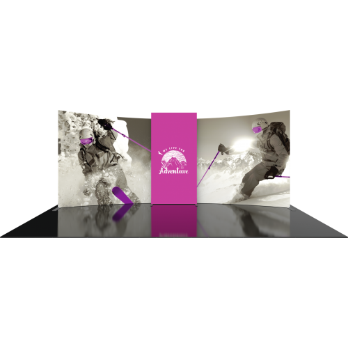 – Center wall features extrusion frame, LED lights and push-fit fabric graphics