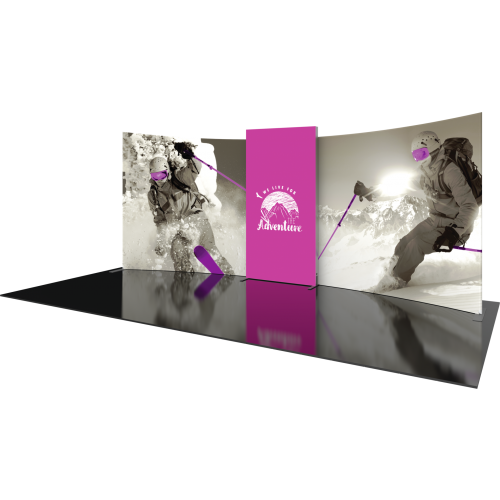 Designer 20ft Series 02 showcases a stylish, geometric shaped backwall and centered rectangular light box designed with extrusion profiles to draw attention! ย Designer 20ft Series 02 is shipped in three portable, expandable wheeled transit cases for easy storage and transport. Fabric graphic attachment is easy โ simply pull the pillow slip style fabric graphics over the frame and zip them up.