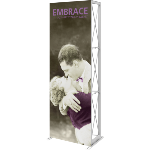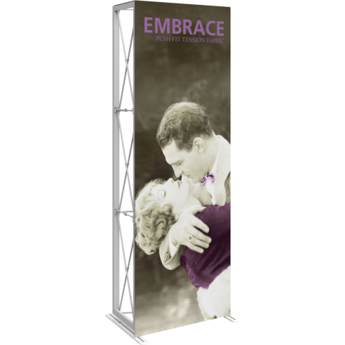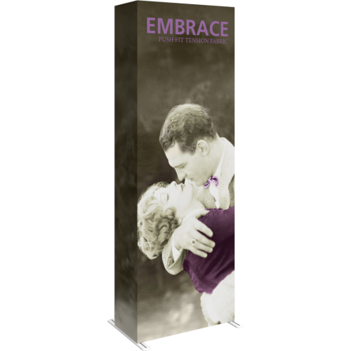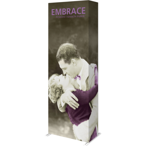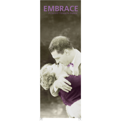 Embrace 2.5ft Banner display, is a push fit tension fabric display, it just pops up and is perfect back drop for many display uses and environments, like for example corporate events and trade shows, retail, press briefings and more, and measures 31″W x 90″H. Embrace Banner Backlit Display is a brilliant choice.