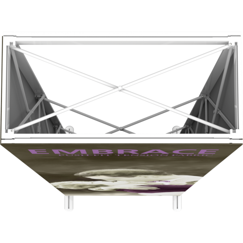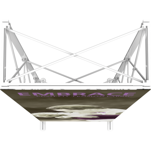 Embrace Display kits feature a collapsible straight silver frame structure and accepts a dye sub printed fabric graphic which attaches to the frame by simply pushing the graphic into a thin channel., referred to as SEG. A slick, modern appearance, combined with a simple design and easy set-up makes this exhibit display ideal for use at fairs and trade shows as step-and-repeats, backdrops and more. A very reliable display booth which will support your corporate brand beautifully. Economical step up from our hopup, offering the the SEG fabric attachment technology.