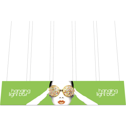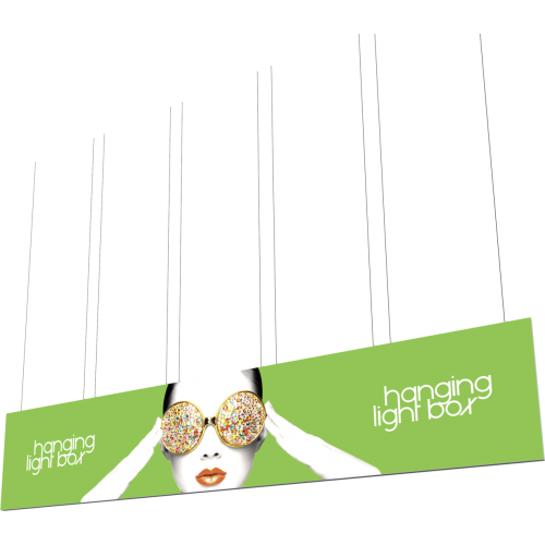 Hanging Light Box 30โ€ฒ x 6โ€ฒ is an awesome, profile-based rectangular backlit hanging structure which is sure to grab the attention of all visitors on the show floor. This 30โ€ฒ wide hanging lightbox features LED lighting strips installed and single or double-sided push-fit fabric graphic options. On site rigging and electrical from the ceiling will be required for this display. This hanging display is great for elevated illuminated messaging at trade, in particular trade shows.