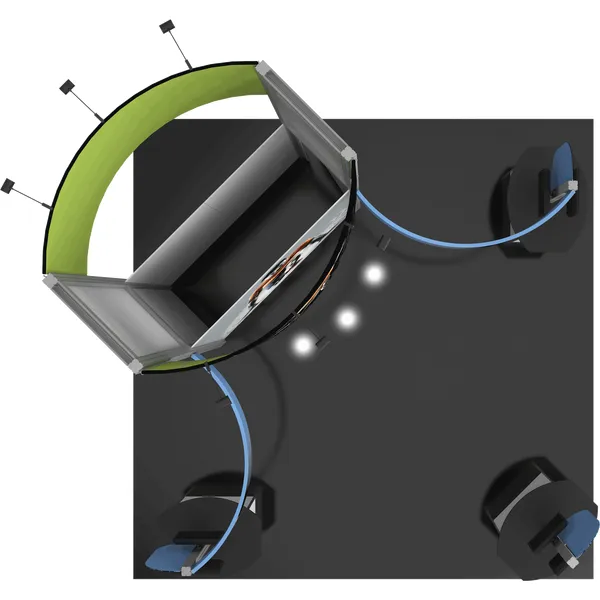 – Kit includes frame, accessible lockable storage space, four pillowcase graphics, two fabric graphic panels, three shaped Sintra panels, three counters, six small monitor mounts*, six 200 LED floodlights, two molded OCE storage cases and one woodcrate– Lights Included: Lumina 200 LED floodlight, straight arm and adjustable head, black finish, 19.5″ from end to end