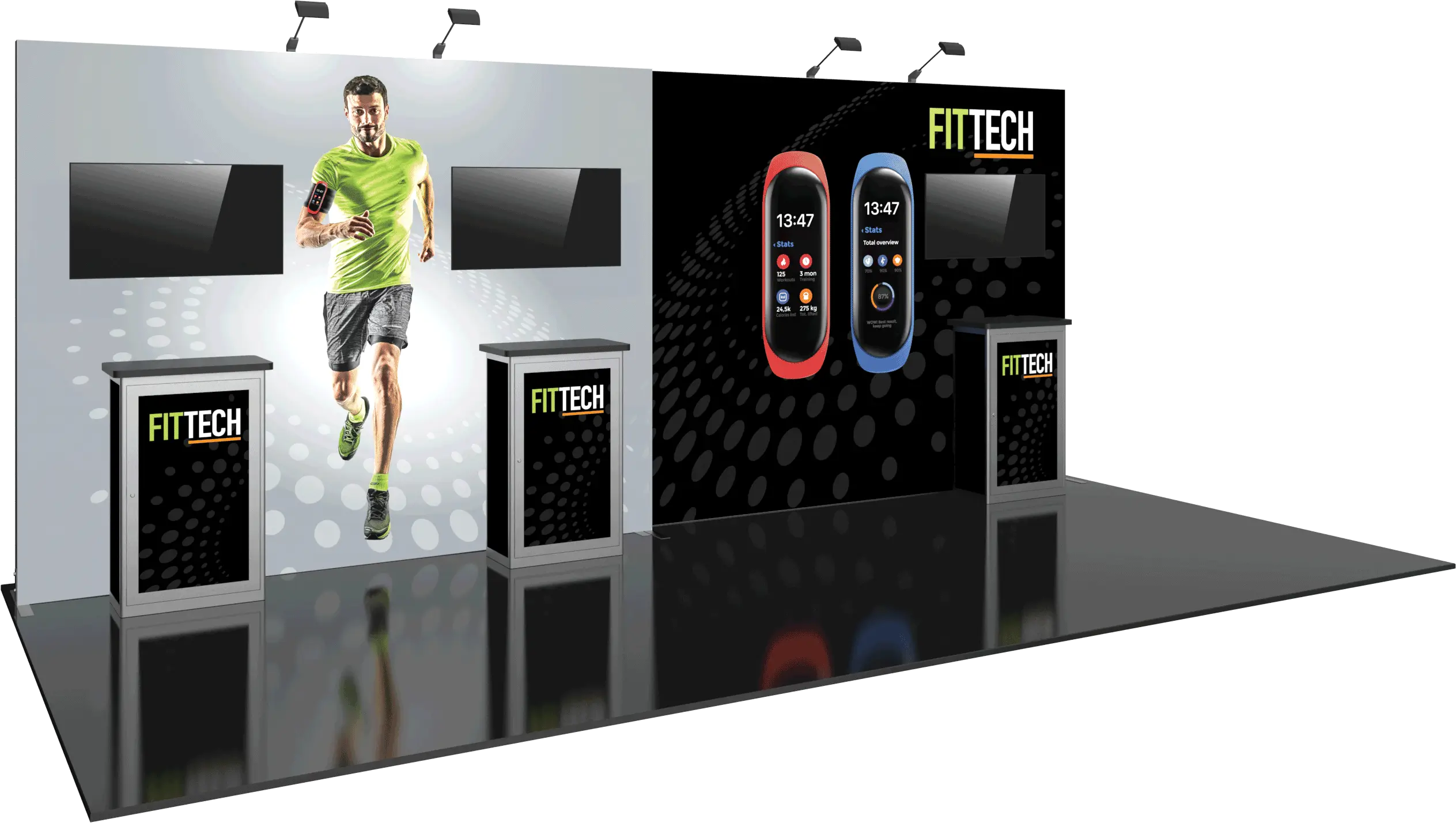 – Reconfigurable into 10’x10′ inline display – additional components may be required