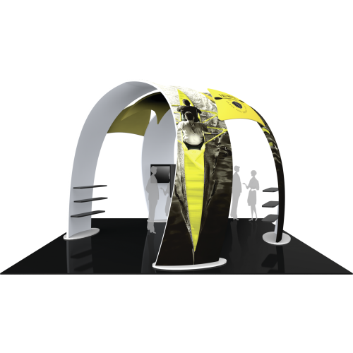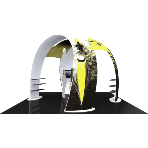 Island 20ft Fusion 07 offers a fabric structure located in the center and sits slightly below between the two main arches, providing additional areas for corporate branding. Two canopy-style fabric structures accents connect the custom arches,ย and these are ideal areas for your company logo..