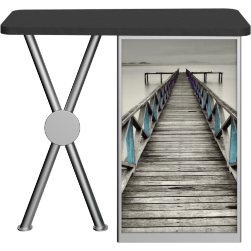Linear Modular X Leg, use as a stand alone or to bring functionality and great reception for greetings to any modular trade show event or Point of purchase display, explore our extensive line of modular counters available in many different shapes and styles.ย Create the ideal display or reception setup, through a mix and match or combine brands together for a coordinated display. Perfect for trade show events and ideally used in Corporate board rooms to reinforce branding.