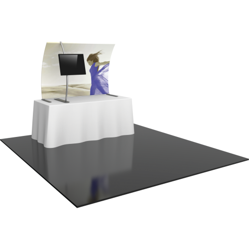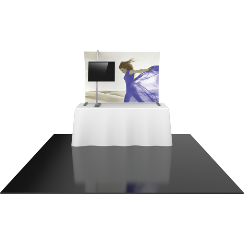 Master Table Top TT3. This Tabletop Fabric Display is lightweight and easy to assemble. Master Table Top TT3 is designed with a slight vertical curve and has flat feet in the back of the unit for stability, and measures 61.96″W x 61.96″W x 45.49″H x 25.19″D.