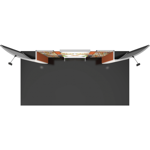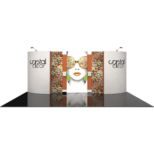 Vector 20ft Kit 19 is a perfect way to stand out from the crowd of exhibits at events. Vector 20ft Kit 19 offers a very light, 3-D or offset profile high-quality frame set with custom push-fit SEG fabric dye sub printed images. LED display lighting enhances the design and messaging you are displaying. Make a splash with push-fit fabric images, an easy-to-assemble profile frame set and rigid printed center accents. A central backlit panel offers an extra boost to corporate branding. LED display spotlights illuminate messaging for a pop on the show floor! With Vector you will shine. Take a look at this brief video and see the simple assembly process: