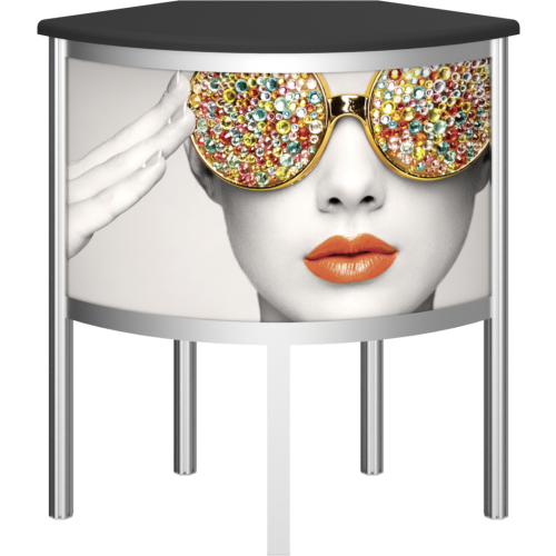 Vector Modular Counter 06, use as a stand alone or to bring functionality and great reception for greetings to any modular trade show event or Point of purchase display, explore our extensive line of modular counters available in many different shapes and styles.ย Create the ideal display or reception setup, through a mix and match or combine brands together for a coordinated display. Perfect for trade show events and ideally used in Corporate board rooms to reinforce branding.